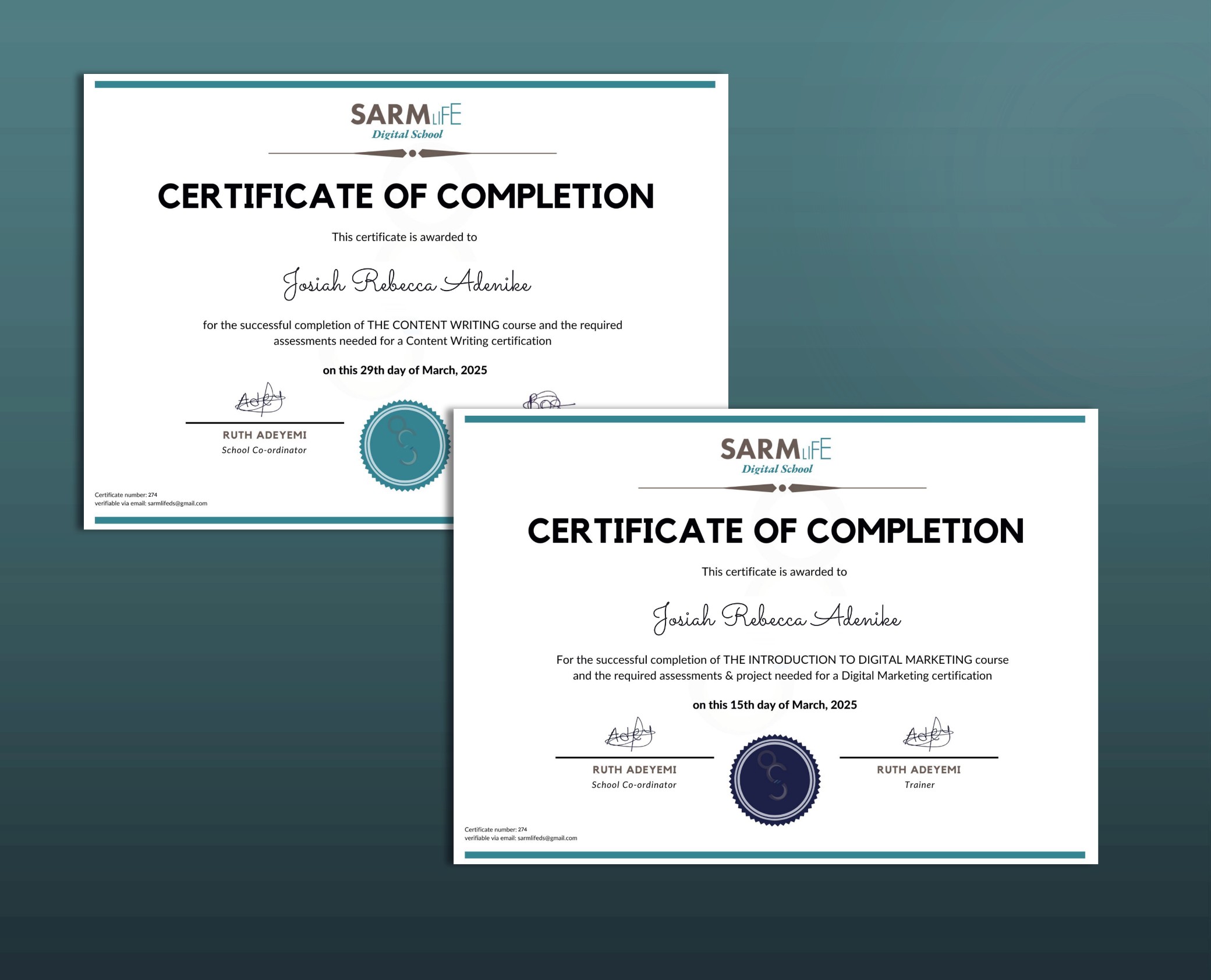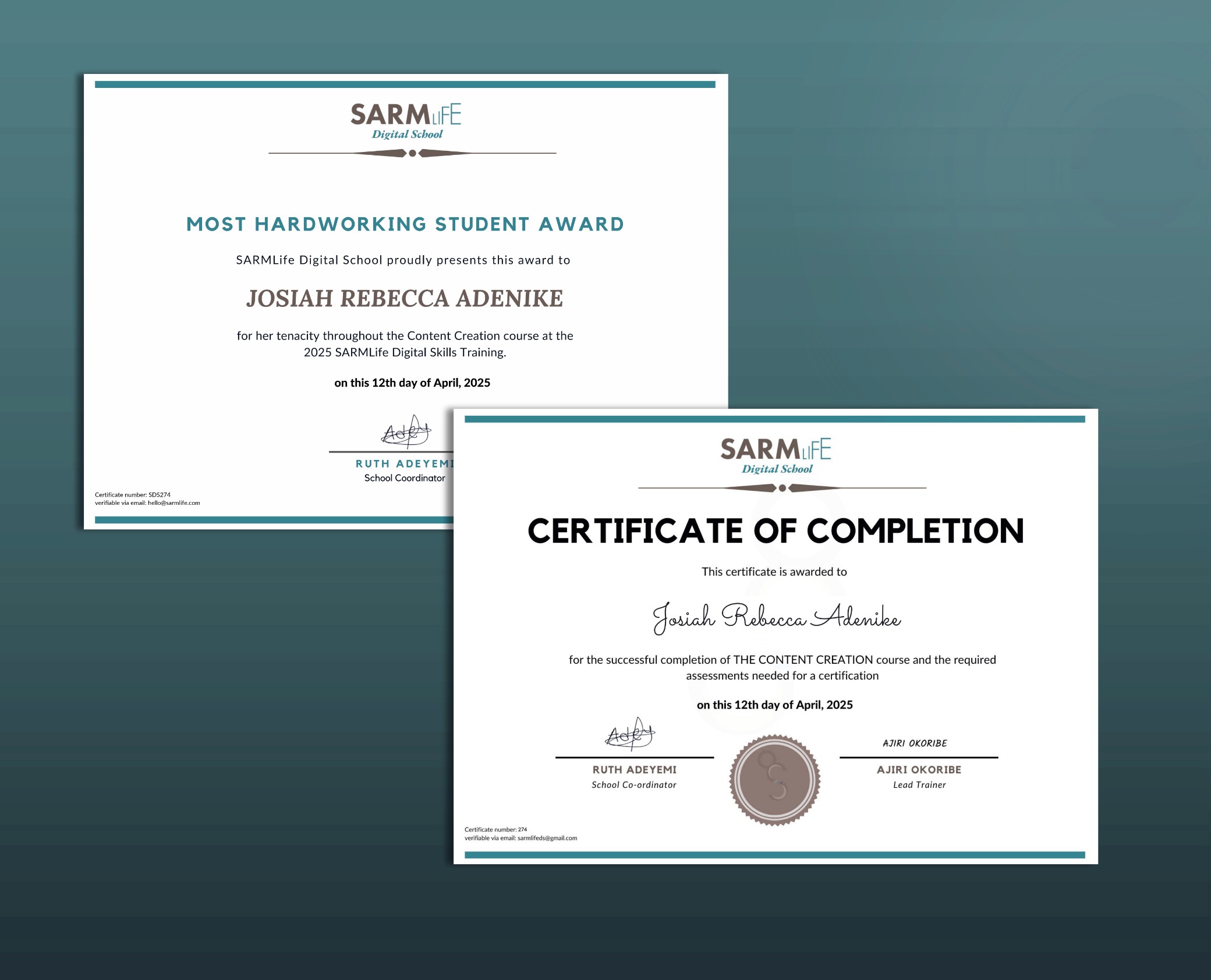 My certifications and Awards